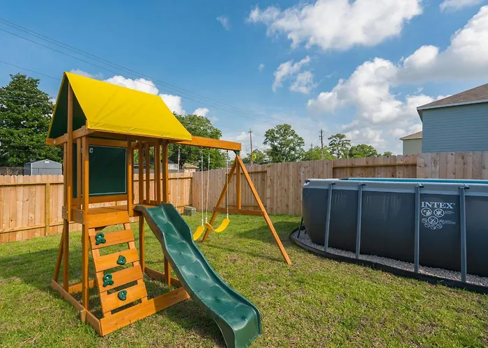 **Welcome to the Pool House With Hot Tub, a luxurious retreat located just 20 kilometers from Ensemble/HCC, offering guests both pampering and convenience in Houston. This stunning villa is designed to cater to vacationers and business travelers alike, effortlessly blending elegance with home-like comfort.**